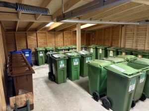 Nytt från vintern 2025/2026 är att matavfall sorteras separat. I varje lägenhet finns bruna påsar och ett kärl för detta, vid behov hämtas ytterligare påsar vid ICA stationen.